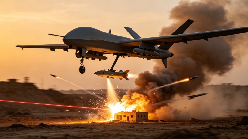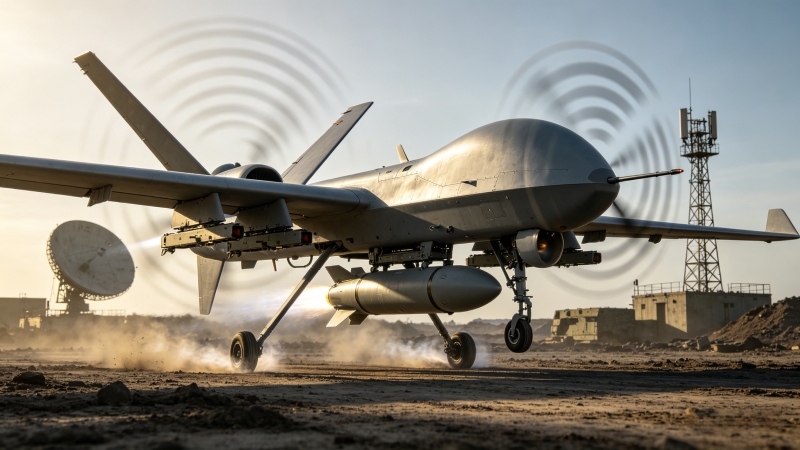 28 hours loiter. 200kg weapons. 600m short field takeoff. 2000km SATCOM range. All at a price that makes sense for real-world operations. The affordable MALE combat drone for counter-terrorism, border security, and persistent strike missions.