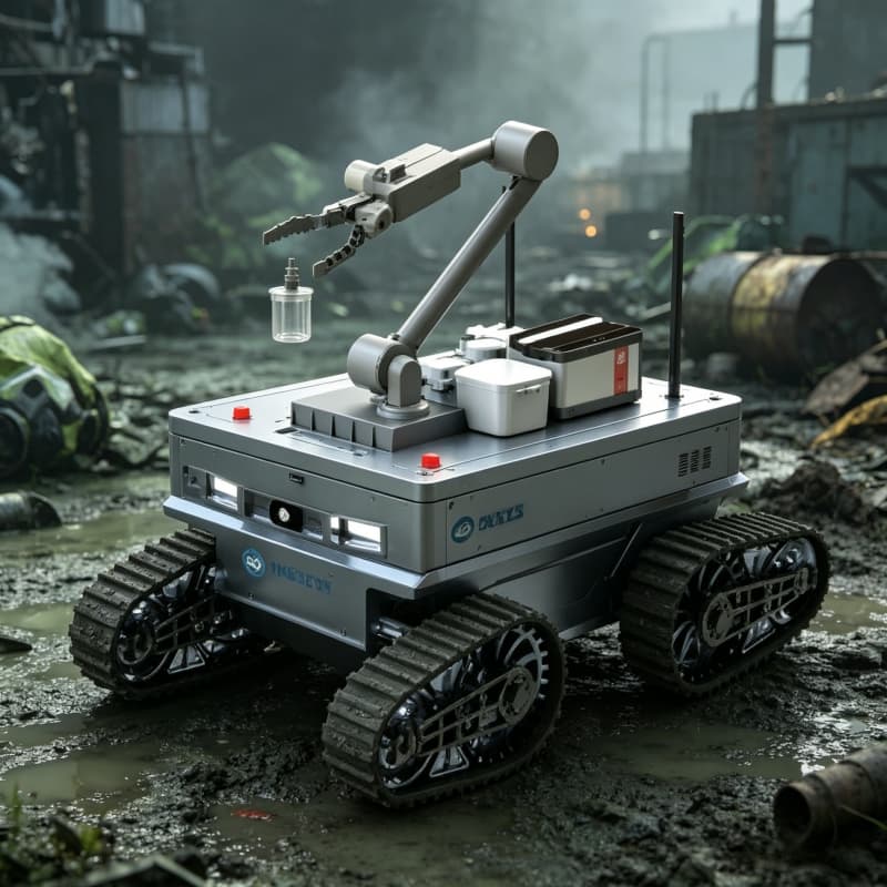 Explosion-proof CBRN robot for nuclear, biological, chemical detection and sampling. All-terrain UGV with real-time data transmission, solid/liquid/gas sample collection, and remote reconnaissance. For hazmat teams, military NBC units, and emergency responders.
