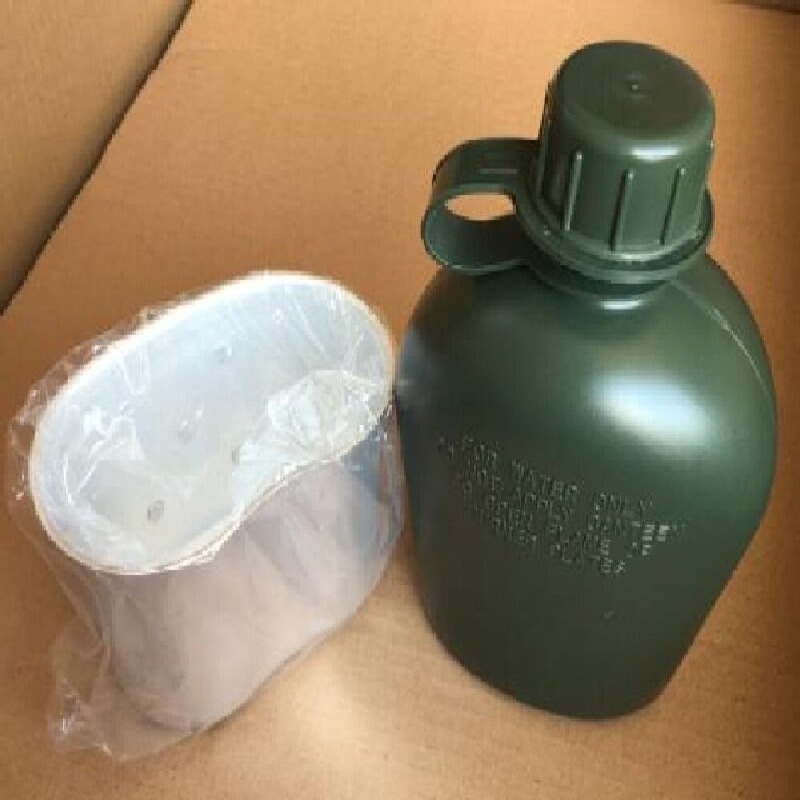 one plastic water canteen, one aluminum cup, one fabric cover,