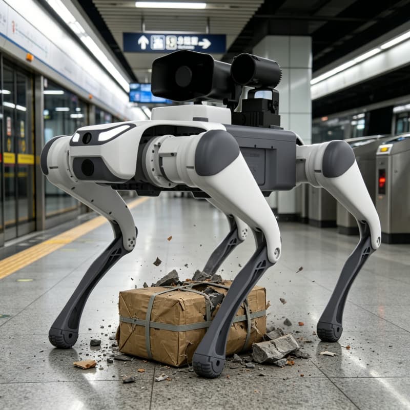 The small model (12.2kg) is agile and capable of jumping, making it ideal for indoor reconnaissance and tight-space operations.