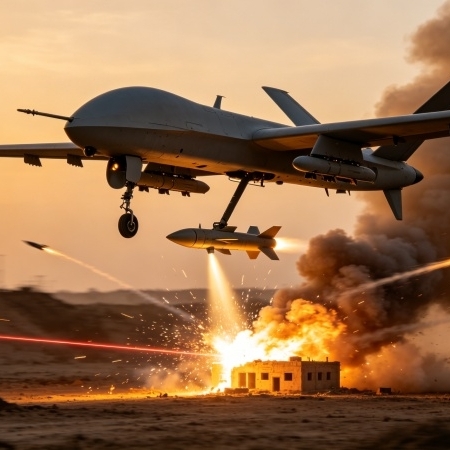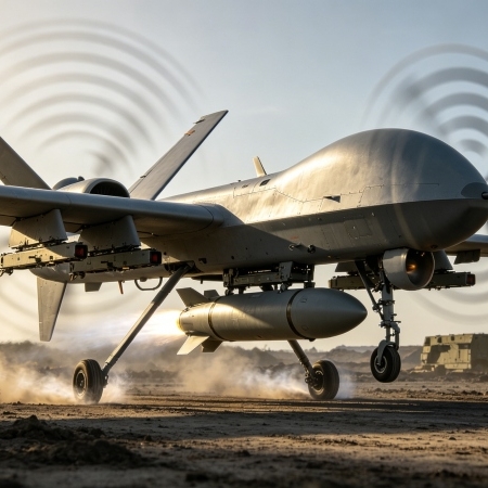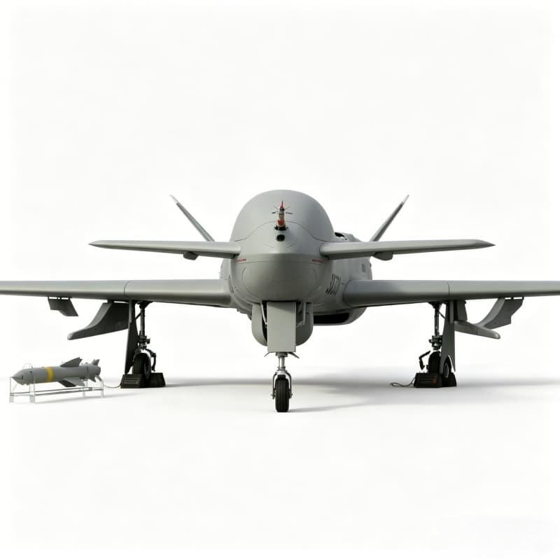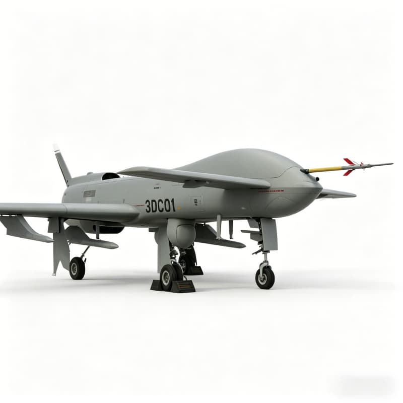 28 hours loiter. 200kg weapons. 600m short field takeoff. 2000km SATCOM range. All at a price that makes sense for real-world operations. The affordable MALE combat drone for counter-terrorism, border security, and persistent strike missions.