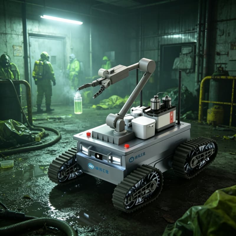 Explosion-proof CBRN robot for nuclear, biological, chemical detection and sampling. All-terrain UGV with real-time data transmission, solid/liquid/gas sample collection, and remote reconnaissance. For hazmat teams, military NBC units, and emergency responders.