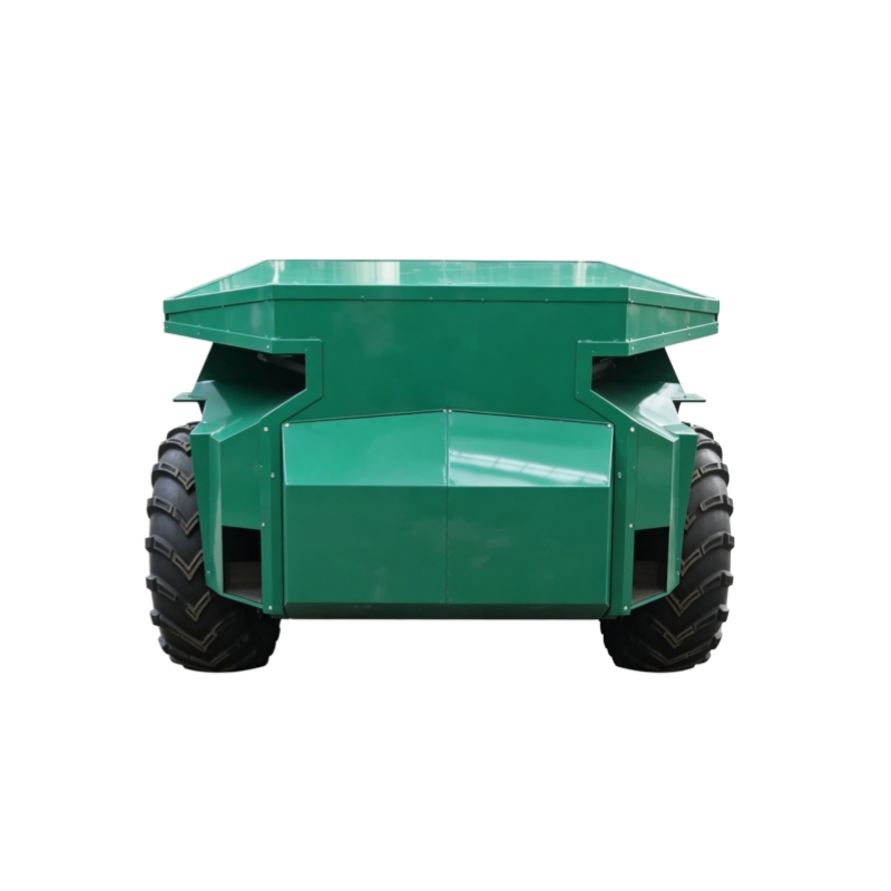 4WD differential unmanned vehicle with 750kg payload, 45km range, 30° climb angle, and IP54 rating. Wireless remote control with CAN2.0. Ideal for military logistics and industrial cargo transport.