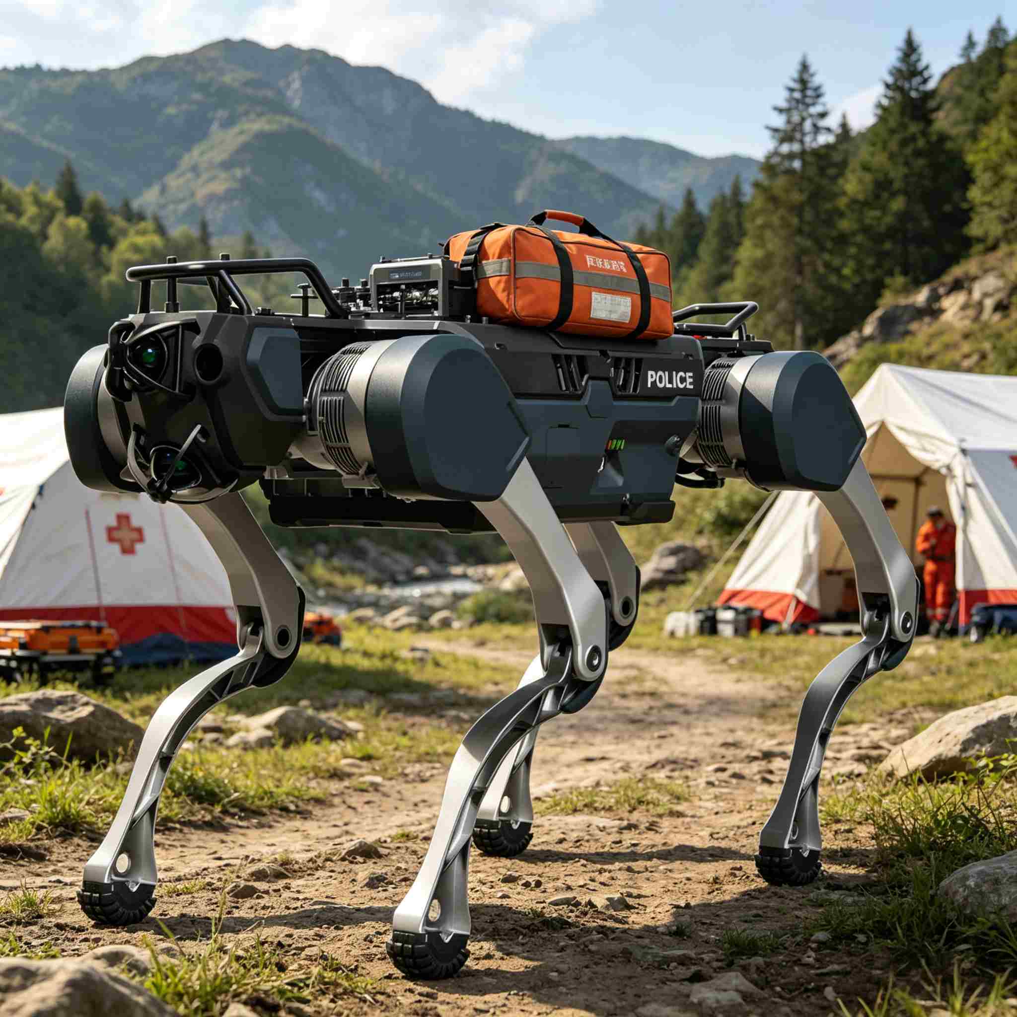 The small model (12.2kg) is agile and capable of jumping, making it ideal for indoor reconnaissance and tight-space operations.